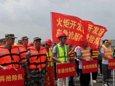 民兵搶險(xiǎn)隊(duì)積極參加鎮(zhèn)街三防應(yīng)急演練