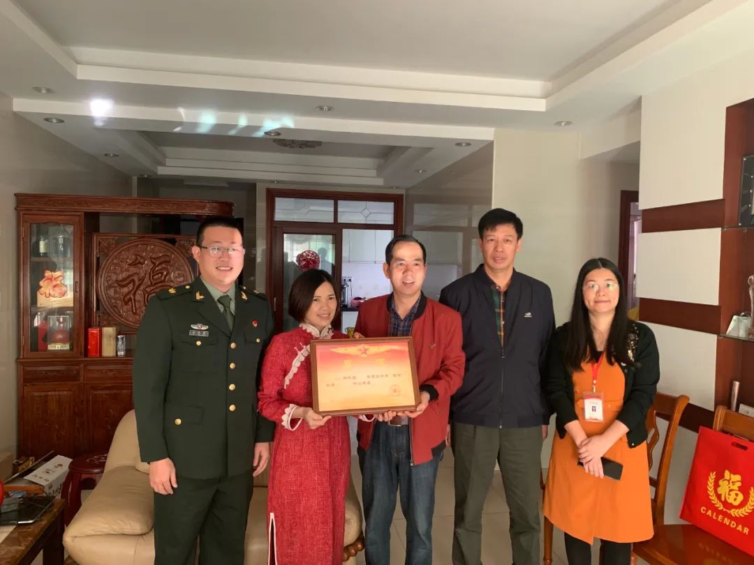 為黃權(quán)東家庭送上掛歷并懸掛光榮牌 |