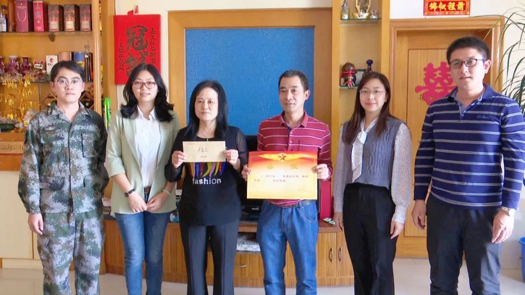 送喜報(bào)是小欖鎮(zhèn)擁軍優(yōu)屬的一項(xiàng)重要工作,將黨和政府對(duì)軍人軍屬的關(guān)心送到家中,增強(qiáng)立功受獎(jiǎng)家屬的榮譽(yù)感,在全社會(huì)營造擁軍優(yōu)屬的濃厚氛圍。鎮(zhèn)武裝部、鎮(zhèn)退役軍人服務(wù)中心的相關(guān)負(fù)責(zé)人感謝家屬為國家培育了優(yōu)秀的士兵,并希望他們繼續(xù)做好軍人的堅(jiān)強(qiáng)后盾,全力支持子女在部隊(duì)安心工作,為國防事業(yè)做出更大貢獻(xiàn)。