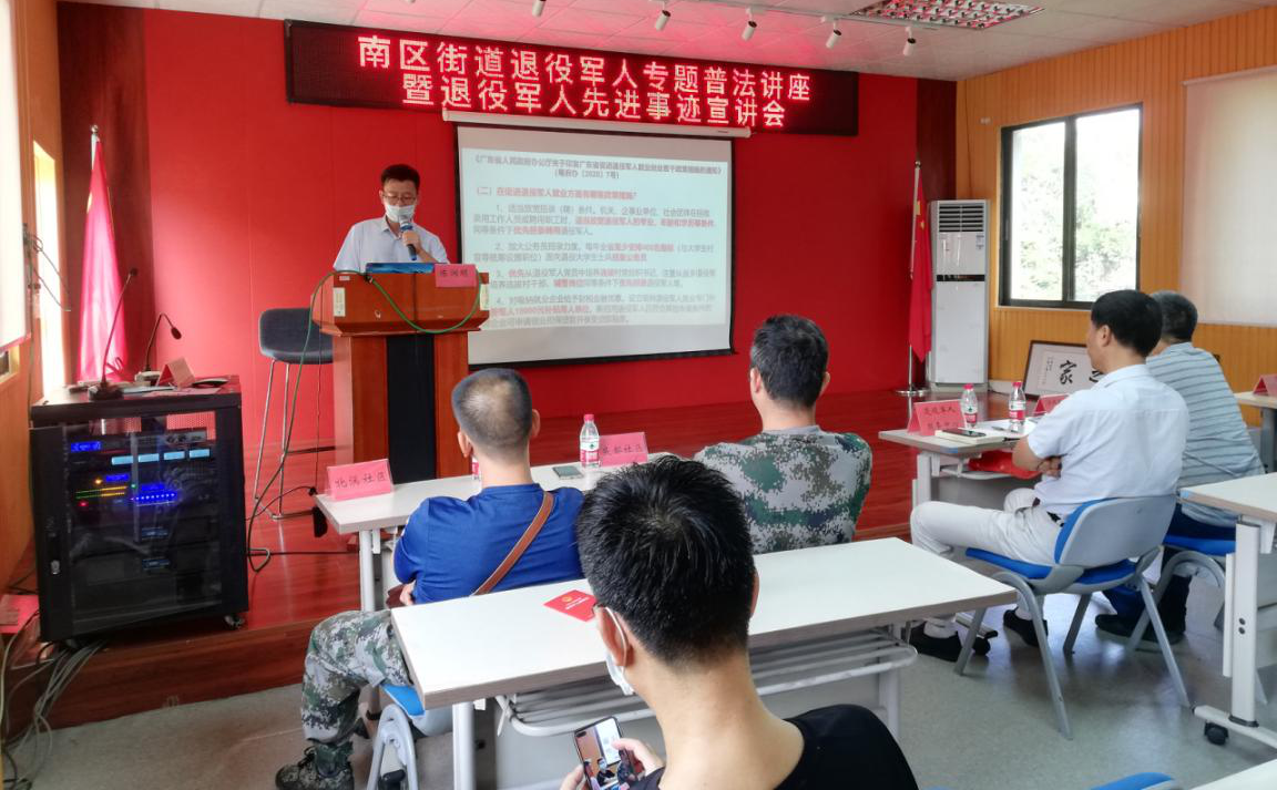 活動邀請南區(qū)街道駐點律師陳潤明現(xiàn)場授課,講解《退役軍人保障法》《民法典》《退役士兵安置條例》等法律法規(guī),對其中涉及的退役安置、就業(yè)創(chuàng)業(yè)、撫恤優(yōu)待、服務管理和法律責任等內(nèi)容進行了深入講解,切實展現(xiàn)尊法、學法、知法、用法的良好氛圍。