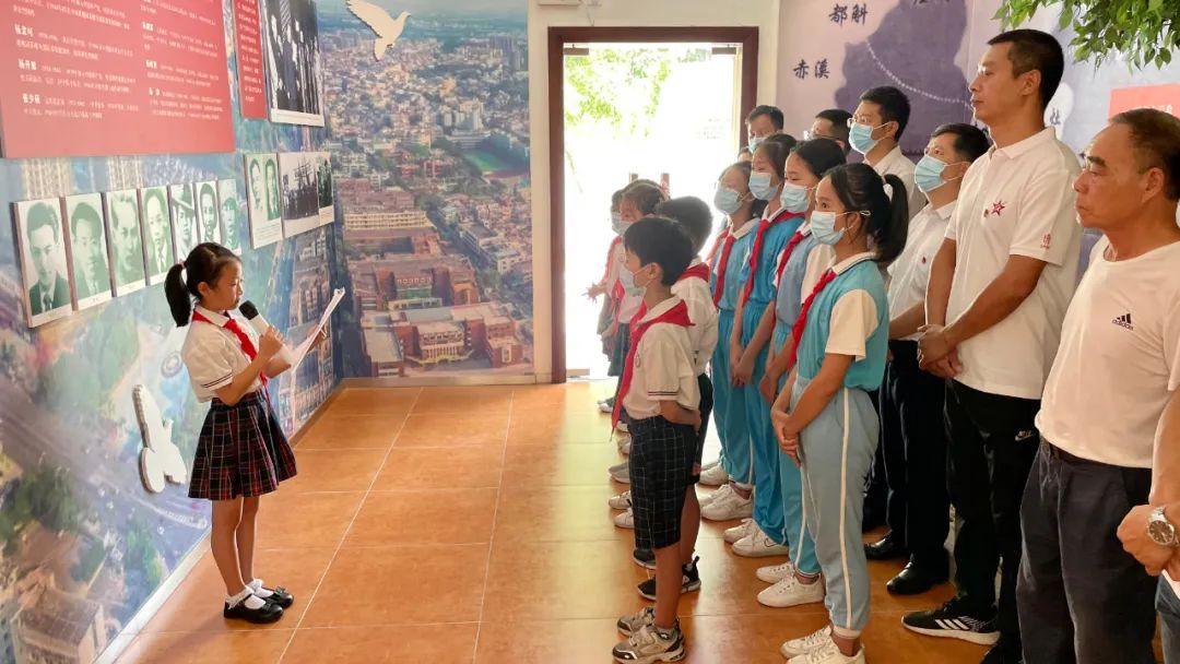 紅色宣講員、沙溪鎮(zhèn)退役軍人紅旗志愿服務(wù)隊隊員、申明亭小組工作人員楊健永介紹申明亭烈士生平事跡。