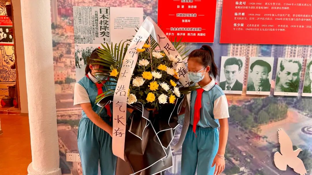 少先隊員代表、中心小學(xué)學(xué)生黃可馨為烈士們獻(xiàn)詞:作為未來祖國接班人,身上流淌著的是先輩們的紅色基因,傳承的是紅色的革命的理想,應(yīng)該養(yǎng)成文明進(jìn)取的習(xí)慣,學(xué)習(xí)好各門文化知識,掌握好各種科學(xué)技術(shù),完善自己的思想,凈化自己的心靈。維護(hù)民族尊嚴(yán)和國家榮譽(yù),將國家的明天建設(shè)得更加美好!