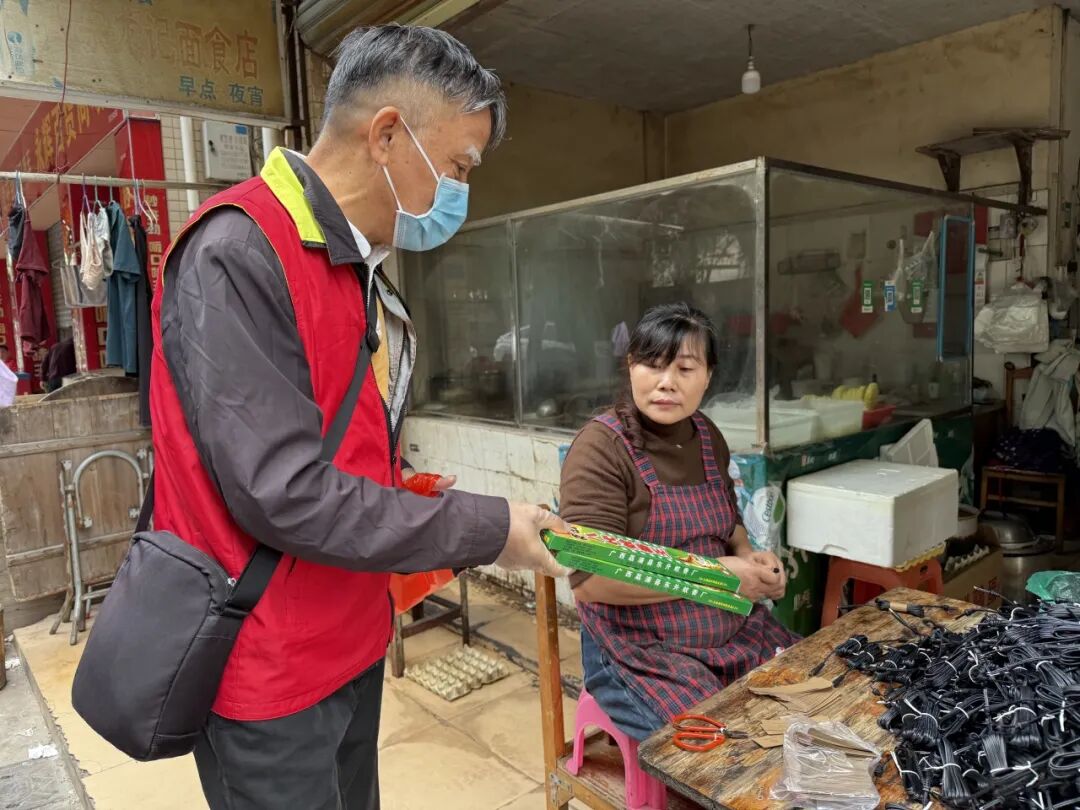 除了走進(jìn)村(居)民家中普及防蚊知識(shí),各村(社區(qū))“兩熱”防控行動(dòng)組還將宣傳觸角延伸至轄區(qū)商鋪。行動(dòng)人員手把手幫商戶檢查花瓶積水、廢舊水桶等蚊蟲(chóng)孳生隱患點(diǎn),反復(fù)提醒商戶做好“翻盆倒罐”,嚴(yán)格落實(shí)“門(mén)前三包”。“基孔肯雅熱、登革熱可不是普通發(fā)燒,關(guān)節(jié)疼起來(lái)特別難受,傳播源就是伊蚊,咱們把衛(wèi)生搞好了,蚊蟲(chóng)少了,‘兩熱’自然就不來(lái)了?!币痪渚渫ㄋ滓锥闹v解,讓防控知識(shí)真正走進(jìn)商戶、融入居民生活,實(shí)現(xiàn)入腦入心。