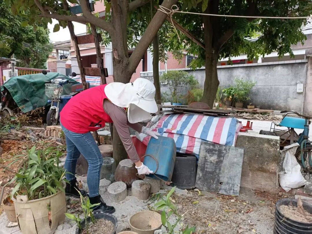 愛(ài)國(guó)衛(wèi)生運(yùn)動(dòng)同步推進(jìn),為“兩熱”防控打下堅(jiān)實(shí)基礎(chǔ)。結(jié)合“百千萬(wàn)工程”人居環(huán)境整治要求,翠亨新區(qū)(南朗街道)掀起全員參與的環(huán)境整治熱潮:黨員干部率先帶頭沖鋒,志愿者與村(居)民積極響應(yīng)跟上,大家齊心協(xié)力清理衛(wèi)生黑點(diǎn)、清運(yùn)各類垃圾、清拆亂搭亂建,還對(duì)公共區(qū)域的積水進(jìn)行“拉網(wǎng)式”排查清理。通過(guò)清理雜亂的角落和積水的盆栽,轄區(qū)巷道變得整潔、院落變得清爽,環(huán)境面貌大為改觀,從源頭徹底鏟除了蚊蟲(chóng)孳生的“溫床”。