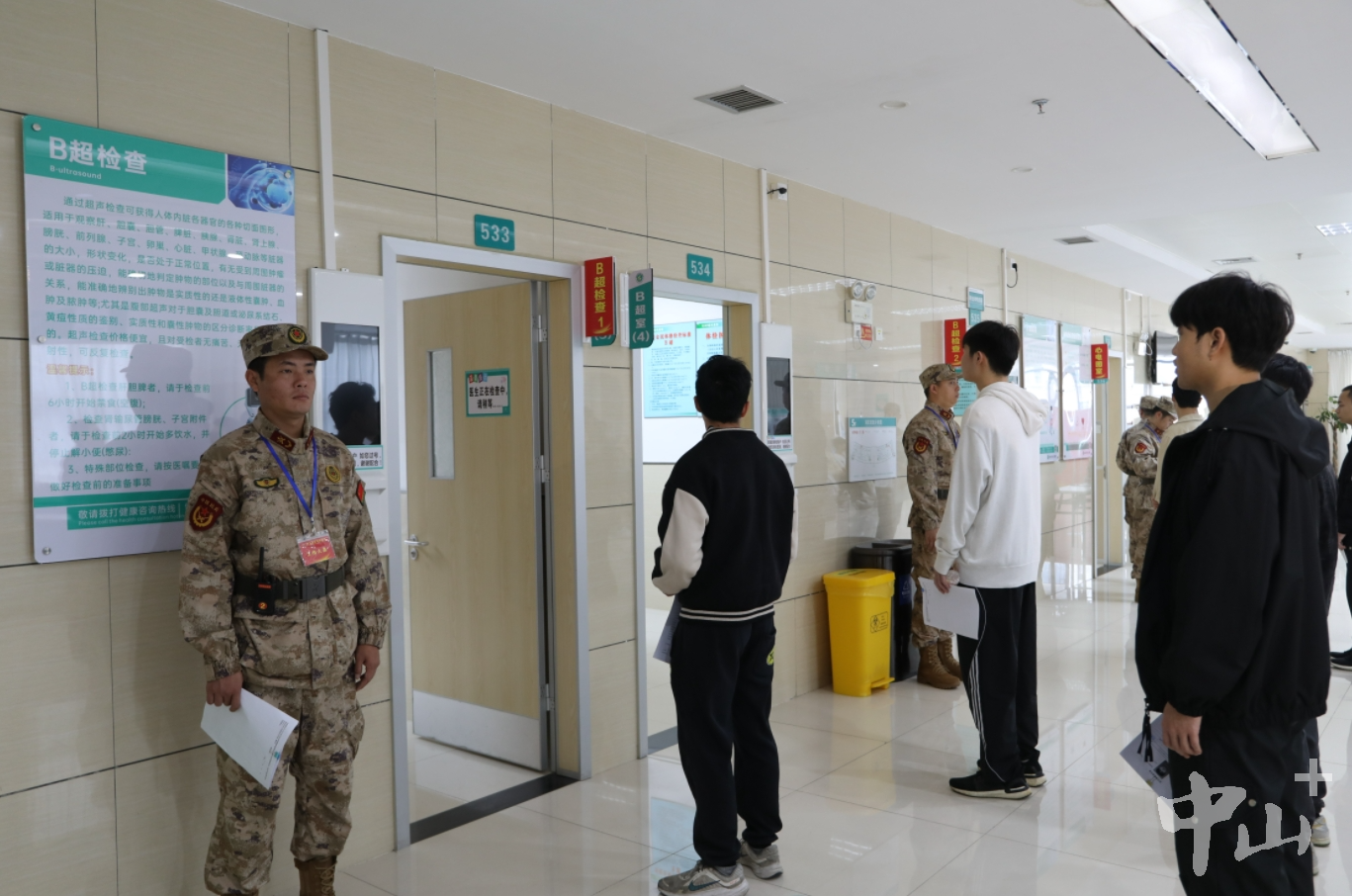 1月20日,中山市2024年上半年征兵體檢在火炬開發(fā)區(qū)人民醫(yī)院開啟,預(yù)計體檢時間將持續(xù)2周以上。 早上7時許,在火炬開發(fā)區(qū)人民醫(yī)院門診五樓,中山市征兵辦工作人員對照名冊開始人員清點(diǎn)。中山市征兵體檢隊總檢醫(yī)生李燦永介紹,此次征兵體檢面向全市所有鎮(zhèn)街,上站青年預(yù)計有1500人左右,其中大學(xué)畢業(yè)生有800人左右。當(dāng)天有100多名大學(xué)畢業(yè)生參加上站體檢,體檢項目有外科、內(nèi)科、心電圖等多個項目。 應(yīng)征青年排隊體檢。記者 王云 攝