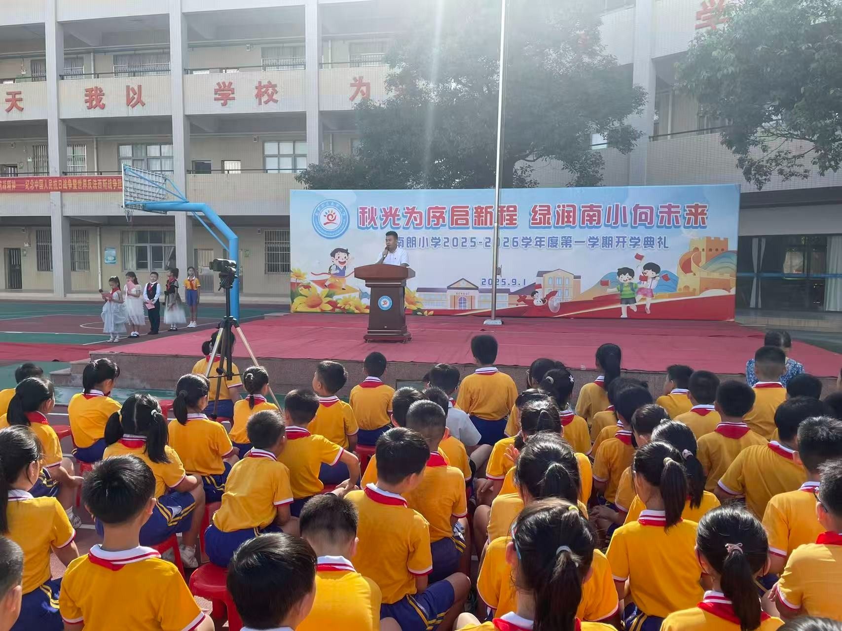 9月1日,中山南朗街道南朗小學(xué)舉行秋季學(xué)期開學(xué)典禮。開學(xué)典禮以紀(jì)念中國人民抗日戰(zhàn)爭暨世界反法西斯戰(zhàn)爭勝利80周年為主題,把愛國主義教育作為新學(xué)期的“開學(xué)第一課”,帶領(lǐng)同學(xué)們回望烽火歲月,弘揚(yáng)偉大抗戰(zhàn)精神。 南朗街道南朗小學(xué)黨支部書記、校長杜少君為同學(xué)們講述了可歌可泣的抗戰(zhàn)故事。簡文祥 攝開學(xué)典禮上,南朗街道南朗小學(xué)黨支部書記、校長杜少君以《銘記偉大勝利,傳承抗戰(zhàn)精神——紀(jì)念中國人民抗日戰(zhàn)爭暨世界反法西斯戰(zhàn)爭勝利80周年》為題,講述了可歌可泣的抗戰(zhàn)故事,為全體師生上了一堂生動(dòng)的思政第一課。 92歲的老校長程民興受邀來到學(xué)校,他以親歷者的身份為同學(xué)們講述校園經(jīng)歷的抗戰(zhàn)故事。簡文祥 攝南朗小學(xué)的前身是安定學(xué)校,也是1943年南朗安定戰(zhàn)斗的核心遺址?;顒?dòng)當(dāng)日,92歲的老校長程民興受邀來到學(xué)校,他以親歷者的身份為同學(xué)們講述校園經(jīng)歷的抗戰(zhàn)故事,讓過去的歷史多了份可觸的溫度。“日本飛機(jī)轟炸安定學(xué)校時(shí),瓦片碎裂的聲響至今仍在耳畔回響,那次轟炸,我險(xiǎn)些沒能活下來?!彼嬖V同學(xué)們,日寇占據(jù)安定學(xué)校后,把兩層教學(xué)樓改造成堡壘,墻外布滿帶刺的鐵絲網(wǎng),槍口日夜對著村口;那時(shí)他就躲在閣樓里,親眼看見二樓窗口常年架著機(jī)槍,夜里探照燈掃過田野時(shí),全村人都屏息凝神,不敢發(fā)出半點(diǎn)聲響。 如今,程民興的兒女們在國外生活,孩子們想要接他出國,但他卻執(zhí)意留在國內(nèi)。他告訴同學(xué)們:“你們看,咱們現(xiàn)在的日子多好啊——吃的、用的樣樣齊全,出門不管是坐車還是騎車,去哪兒都特別方便;再瞧瞧你們的校園,環(huán)境優(yōu)美,設(shè)備先進(jìn)。同學(xué)們一定要珍惜這么好的學(xué)習(xí)環(huán)境,認(rèn)真讀書,增長本領(lǐng),祖國的建設(shè)以后就要靠你們了?!?/p> 杜少君帶領(lǐng)孩子們到南朗小學(xué)操場保留的帶彈孔的殘墻,講述抗戰(zhàn)往事。簡文祥 攝 活動(dòng)最后,杜少君特意帶領(lǐng)孩子們到南朗小學(xué)操場保留的帶彈孔的殘墻,觸摸那些深淺不一的彈痕。他指向殘墻旁生長的綠植說道:“這片曾被戰(zhàn)火灼燒的土地,如今已長出繁榮的新綠。烈士們用生命守護(hù)的家園,正在一代代人的手中變得更好。”觸摸彈痕的那一刻,同學(xué)們仿佛在與歷史對話:傳承偉大抗戰(zhàn)精神,不是一句口號(hào),而是要接過前輩的接力棒,在新時(shí)代為家鄉(xiāng)、為祖國奮斗。 校園操場、紅色地標(biāo)、親歷者、戰(zhàn)斗遺址串聯(lián)起一堂行走的思政課。杜少君說:“讓孩子們在歷史現(xiàn)場觸摸過去,才能真正理解‘銘記’的意義。偉大抗戰(zhàn)精神的傳承,就藏在每一次駐足、每一次傾聽、每一次思考里?!?/p> 通訊員:于銳 簡文祥 ◆編輯:吳玉珍◆二審:鄭沛鋒◆三審:周亞平 文盾校對——用科技,守文字 |