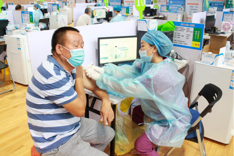 東鳳鎮(zhèn)臨時接種點現(xiàn)日均接種500劑次,在臨時接種點現(xiàn)場,等待接種的重點優(yōu)撫對象佩戴好口罩,在工作人員和退役軍人志愿者的指引下有序進入接種點。 志愿者們依次指引重點優(yōu)撫對象們?nèi)サ阶稍兊怯泤^(qū)、量血壓區(qū)、接種區(qū)和留觀區(qū),逐個完成新冠疫苗接種。