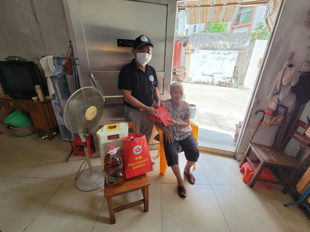 為弘揚(yáng)愛國主義精神,發(fā)揚(yáng)退役軍人志愿者擁軍優(yōu)屬的光榮傳統(tǒng),表達(dá)對退役軍人的崇敬和關(guān)愛,古鎮(zhèn)鎮(zhèn)退役軍人服務(wù)中心與鎮(zhèn)退役軍人紅旗志愿服務(wù)隊(duì)在“八一”建軍節(jié)來臨之際開展節(jié)日慰問活動,對15戶困難退役軍人家庭和7戶烈屬進(jìn)行走訪慰問。 7月27日-29日,鎮(zhèn)退役軍人紅旗志愿服務(wù)隊(duì)隊(duì)員利用休息時(shí)間深入各村(居),帶著米、油、飲料等生活用品走進(jìn)困難退役軍人家庭和烈屬家中。 每到一處,退役軍人紅旗志愿者們與退役軍人及其家屬親切交談,詢問他們的身體狀況和生活情況,并詳細(xì)了解他們目前的實(shí)際困難和需求,感謝他們?yōu)閲液蜕鐣龀龅呢暙I(xiàn),囑咐他們要以積極的心態(tài)面對困難,高溫天氣下注意飲食和防暑,同時(shí)宣傳普及《退役軍人保障法》。