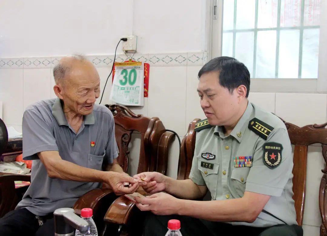 在“八一”建軍節(jié)即將到來之際,7月30日上午,市委常委、中山軍分區(qū)政委劉燦瑩來到橫欄鎮(zhèn),走訪慰問部分退役軍人,為他們送去黨和政府的親切關(guān)懷,祝福他們建軍節(jié)快樂、身體健康、家庭幸福。鎮(zhèn)領(lǐng)導(dǎo)林培華、葉劍榮、高桂冰等陪同慰問。 周七友,今年80歲,是橫欄鎮(zhèn)橫東村一名有著54年黨齡的退伍老兵。1959年,18歲的周七友參軍入伍,成為一名軍人。1968年,周七友光榮退伍。 1959年到1968年,周七友獲得了許多獎(jiǎng)項(xiàng)與勛章,這些勛章他都悉心保存,非常有意義和價(jià)值。 “這幾枚是'五好戰(zhàn)士'稱號(hào)徽章。當(dāng)年戰(zhàn)士們積極響應(yīng)黨中央號(hào)召,爭(zhēng)當(dāng)'五好戰(zhàn)士'。'五好'是指:政治思想好,三八作風(fēng)好,軍事技術(shù)好,完成任務(wù)好,鍛煉身體好”,多年過去了,周七友還清楚記得“五好”的具體內(nèi)容。“還有這一枚是‘技術(shù)能手’稱號(hào)徽章,當(dāng)時(shí)我能夠熟練地拆裝一整部車,所以就獲得了這枚‘技術(shù)能手’稱號(hào)徽章。這枚徽章我們一個(gè)班只有我獲得了?!?/p>