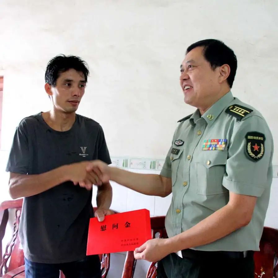 吳桂坤,40歲,為新豐村優(yōu)撫對(duì)象,2001年12月入伍,2003年12月退伍,曾在廣西某部隊(duì)服役,是六級(jí)殘疾退伍軍人。 劉燦瑩認(rèn)真傾聽了他們的實(shí)際情況、生活需求和對(duì)擁軍優(yōu)撫工作的意見建議,感謝他們?yōu)閲?guó)家和社會(huì)作出的積極貢獻(xiàn),囑托他們?cè)诟邷乜崾钐鞖庖⒁庾龊梅朗罱禍?,有問題、有困難及時(shí)向相關(guān)部門反映,叮囑相關(guān)工作人員要及時(shí)了解他們?cè)谏詈凸ぷ魃系膶?shí)際困難,切實(shí)落實(shí)好各項(xiàng)優(yōu)撫政策,用心用情用力為他們辦實(shí)事、解難題。 市鎮(zhèn)領(lǐng)導(dǎo)送上慰問金和慰問品 |
