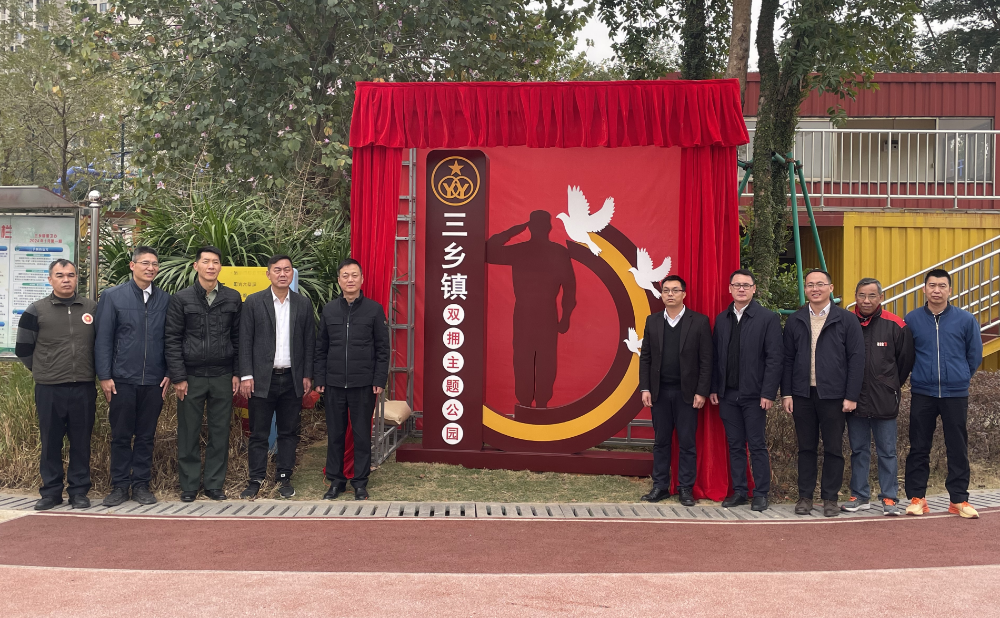 為進一步營造“擁軍優(yōu)屬、擁政愛民”的濃厚氛圍,推進雙擁文化深入人心,凝聚黨政軍民參與創(chuàng)建雙擁模范城的強大合力,中山市三鄉(xiāng)鎮(zhèn)依托南部兒童公園,打造三鄉(xiāng)鎮(zhèn)首個雙擁主題公園。1月26日下午,三鄉(xiāng)鎮(zhèn)舉行雙擁主題公園揭牌儀式。 三鄉(xiāng)雙擁主題公園揭牌儀式現(xiàn)場。
