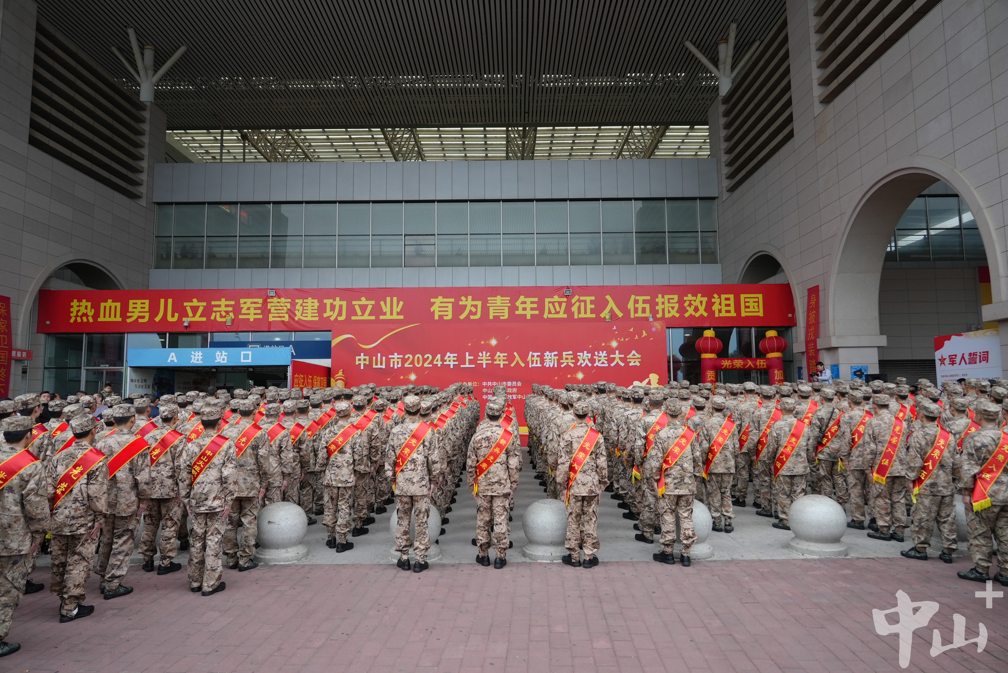 青春獻(xiàn)給國防,熱血報效祖國。 3月16日早上,中山市2024年上半年入伍新兵歡送大會在城軌中山站的進(jìn)站廣場舉行。300多名適齡青年經(jīng)過嚴(yán)格的體檢和政考,即將邁入軍營。 3月16日早上,中山市2024年上半年入伍新兵歡送大會在城軌中山站的進(jìn)站廣場舉行。記者 易承樂 攝