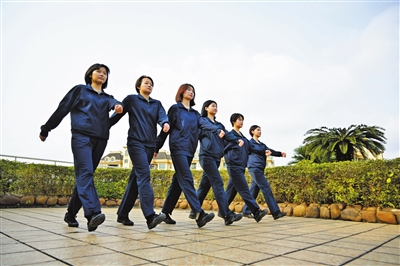應(yīng)征女青年在進(jìn)行操練。記者 易承樂 攝