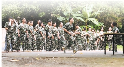 ▲一公司員工穿高仿軍服拓展集訓(xùn),已被查處。 被訪者提供