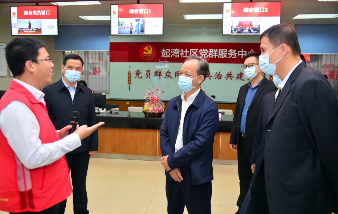 在東區(qū)街道起灣社區(qū)黨群服務(wù)中心,郭文海與社區(qū)工作人員親切交流,參觀活動(dòng)室、功能區(qū)、黨建工作展覽室,聽取基層黨組織建設(shè)和疫情防控工作情況?!吧鐓^(qū)非常重要,要通過黨建引領(lǐng),組織、發(fā)動(dòng)社會(huì)各階層、各領(lǐng)域的人士來共建共治共享?!惫暮C銊?lì)起灣社區(qū),作為全國先進(jìn)基層黨組織要在全市樹立標(biāo)桿,充分發(fā)揮“兩個(gè)作用”,創(chuàng)新工作方式方法,更好地發(fā)動(dòng)群眾、服務(wù)群眾。要加強(qiáng)人文關(guān)懷,深入細(xì)致做好“老幼病殘?jiān)小钡忍厥馊后w的服務(wù)保障工作,切實(shí)兜牢民生底線。