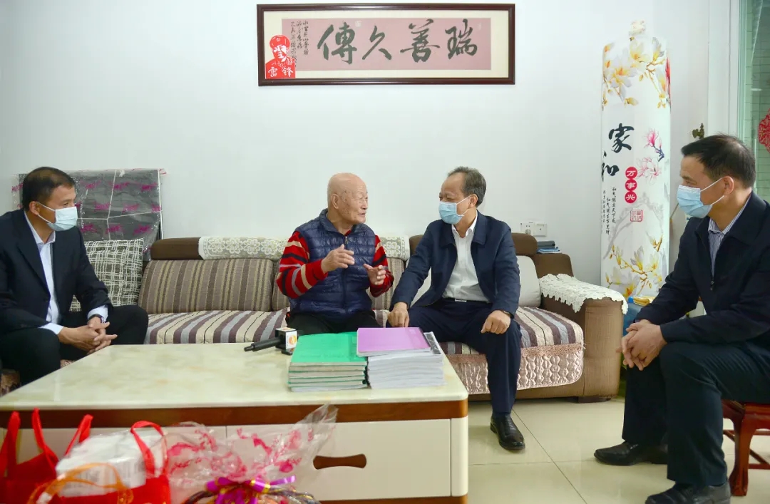“這是我們這次黨代會(huì)報(bào)告的金句,我都記下來了。要用'虎 '的精神,為黨的事業(yè)奉獻(xiàn)自己的一生?!笨蛷d桌面上放著洪瑞久一摞筆記本,隨便翻開一本,里面密密麻麻記錄了市第十五次黨代會(huì)的內(nèi)容?!白D】?,感謝您!學(xué)習(xí)得非常認(rèn)真!您退休不褪色,退休不退崗,努力培養(yǎng)后一代,發(fā)揮余熱,非常用心!”郭文海拉住洪瑞久的手,代表市委、市政府感謝他為黨和人民事業(yè)發(fā)展作出的貢獻(xiàn),關(guān)切詢問老人的生活情況,贊揚(yáng)他退休后熱心社區(qū)公益、弘揚(yáng)紅色文化,祝福他和家人身體健康、幸福美滿,并送上慰問金。