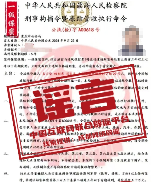 謠 言 檢察院從線上發(fā)來(lái)“刑事拘捕令”?