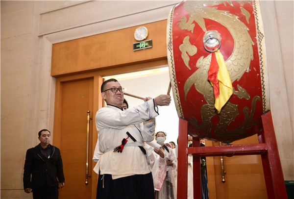 活動在一支輕盈優(yōu)美的油紙傘古典舞中開場,大賽現(xiàn)場布置還原古代文化廟會的場景,33位踢館作者身著漢服,分三批進場。參賽選手進場后首先擊鼓三下,而后呈稿,書童接稿后,再傳給臺上踢館賽評委。